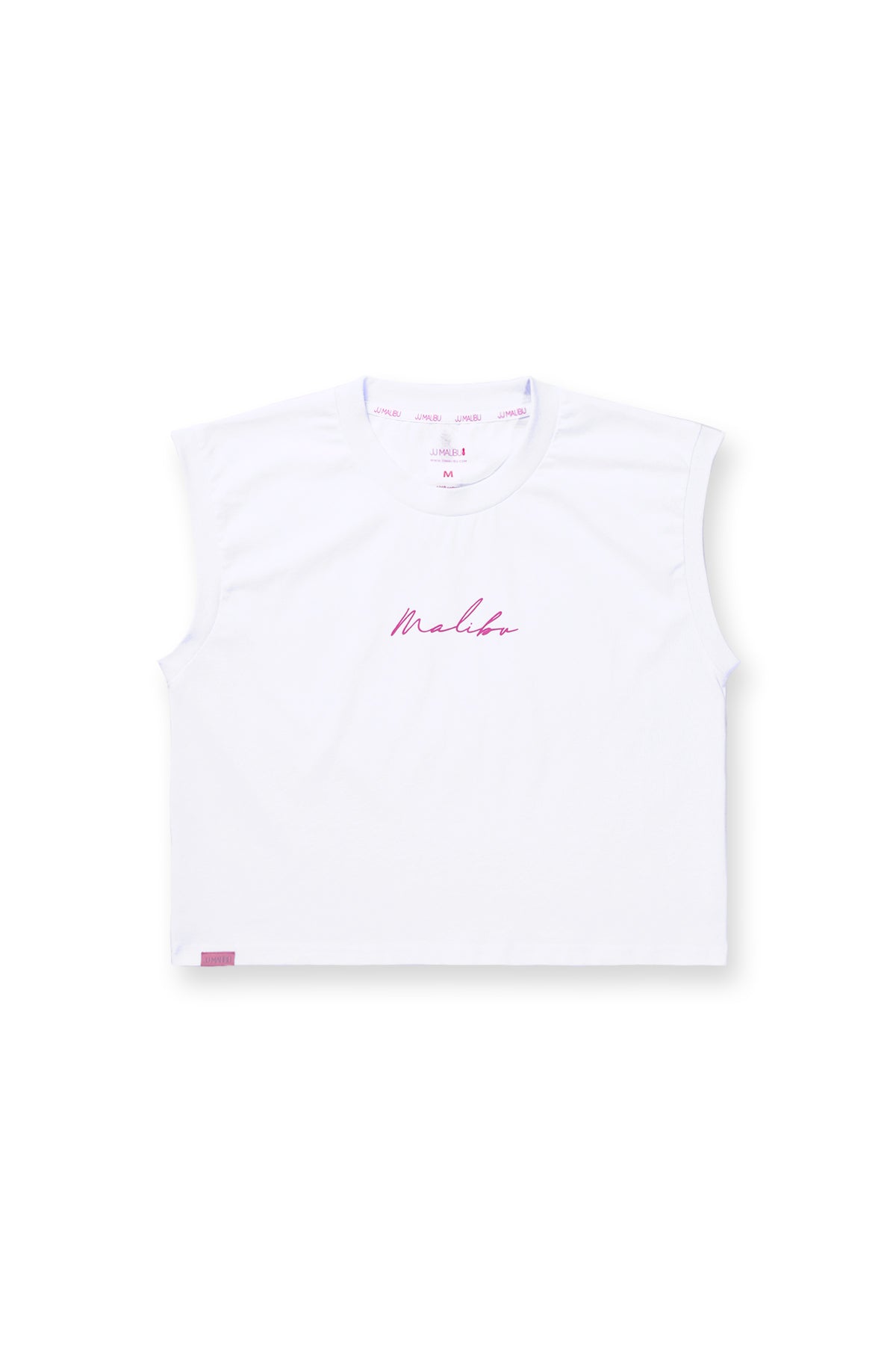 Escapism Muscle-Fit Crop Tank - White & Purple Logo