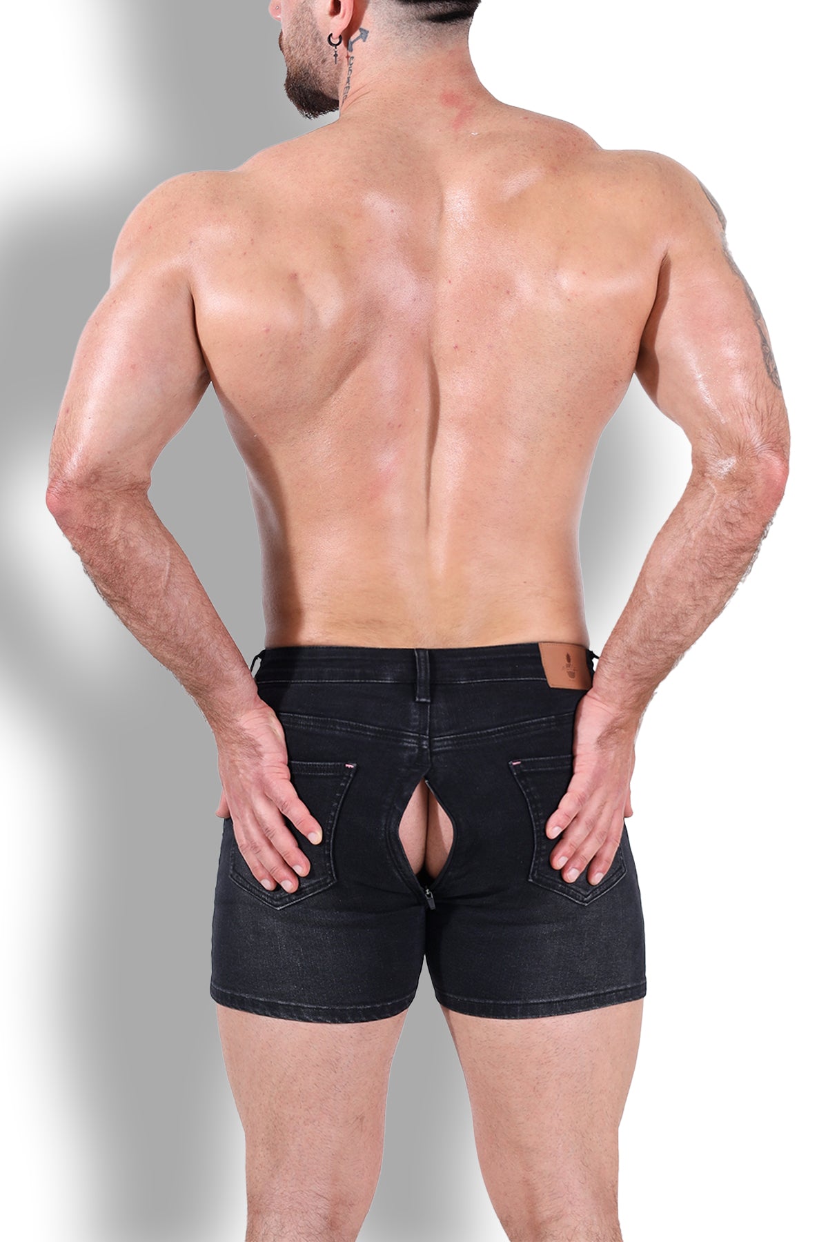 Peek-A-Boo Denim Shorts - Black