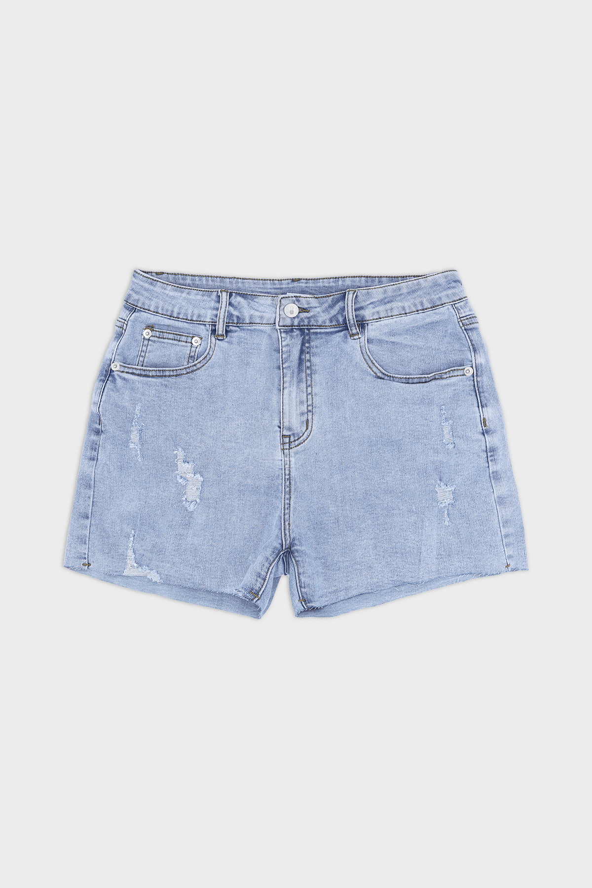 Peek-A-Boo Denim Shorts - Sky Blue S